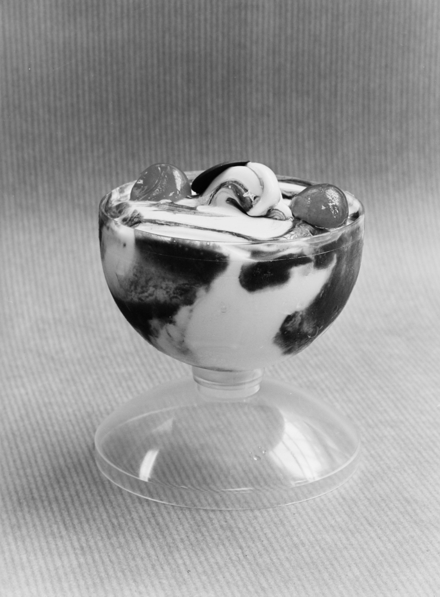 Glace-Bolaget, plastcup med garnering, stängd och öppnad, interiör Vips glassbar