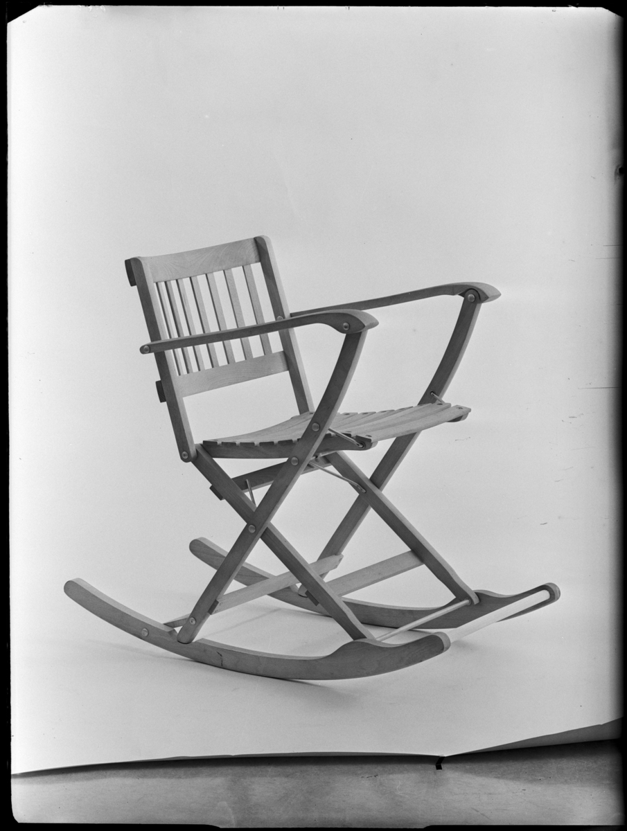 Titel: HOPFÄLLBAR GUNGSTOL SAMT VIKSKÄRM AV FURU