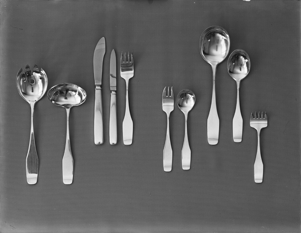 TEAKSKÅL, TRÄSAX, GLAS, PORSLIN, SILVER OCH KNIV