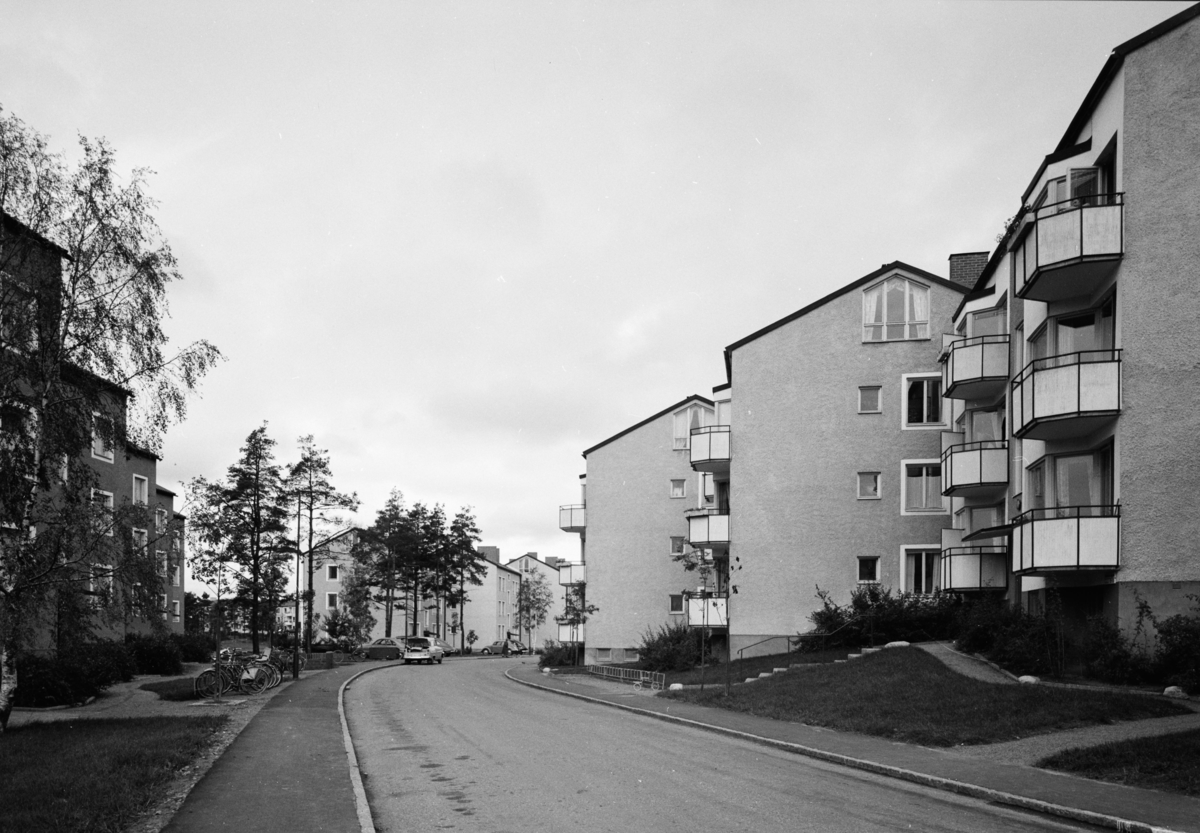 Exteriör, bostadsområde med flerbostadshus. Fasad mot gata