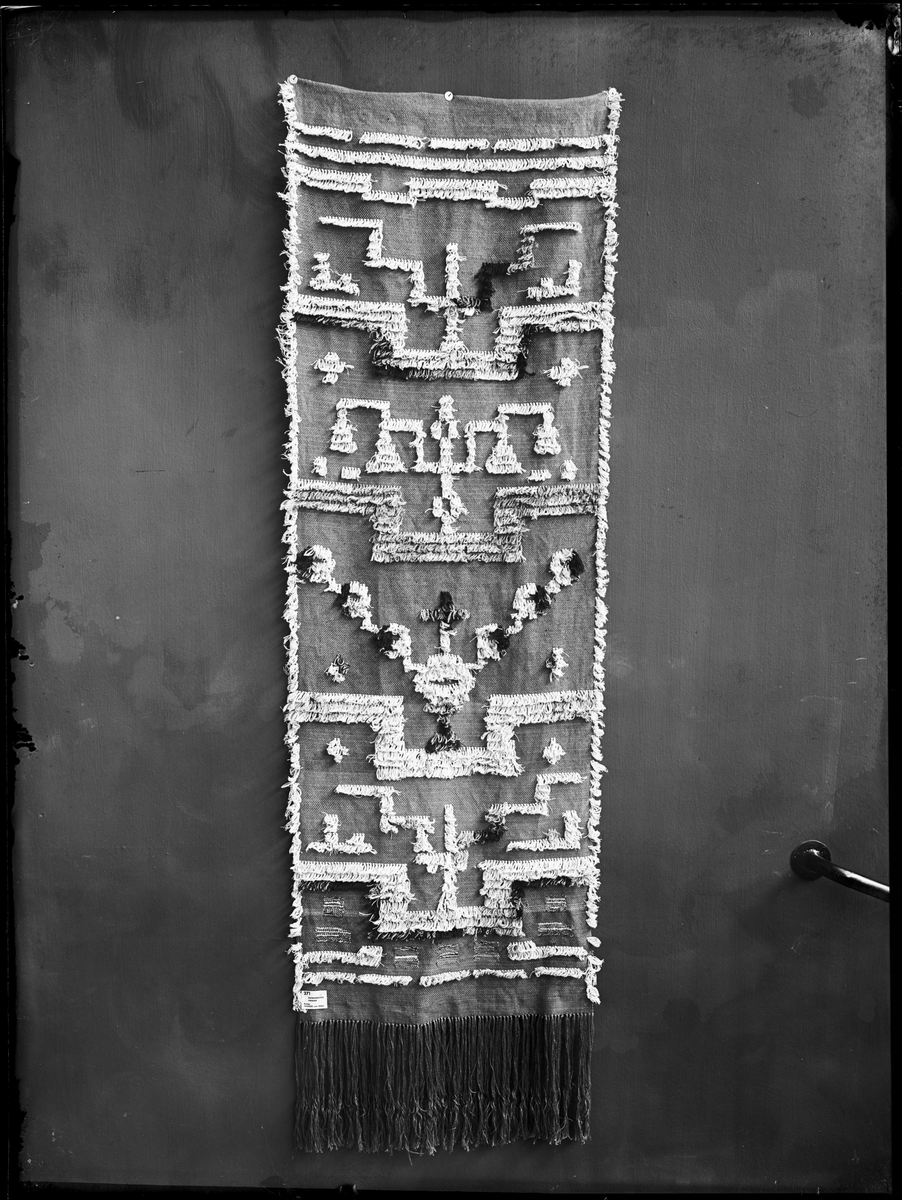 Titel: Stockholmsutställningen 1930 Textil med lång frans.
