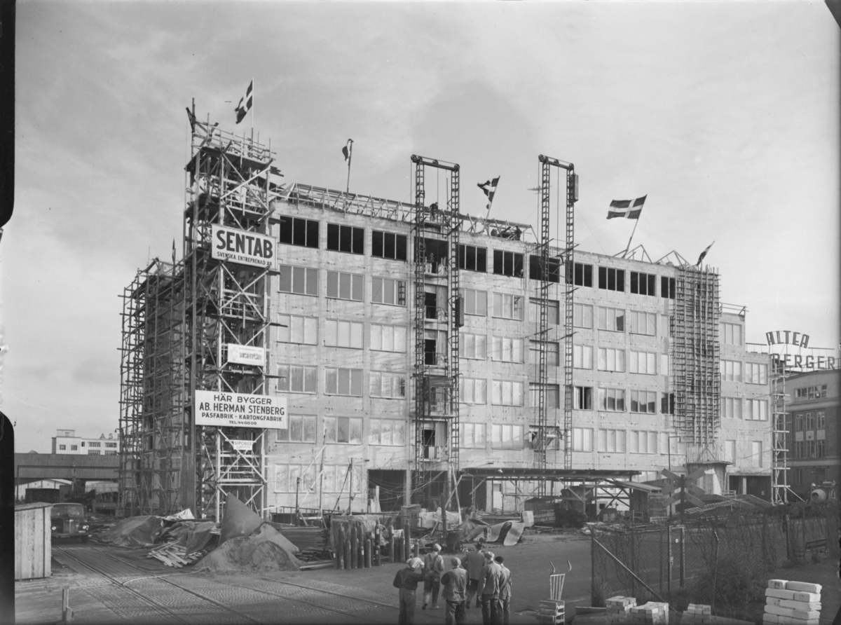 Titel: AB Herman Stenberg, taklagsdagen bygget Virkesvägen