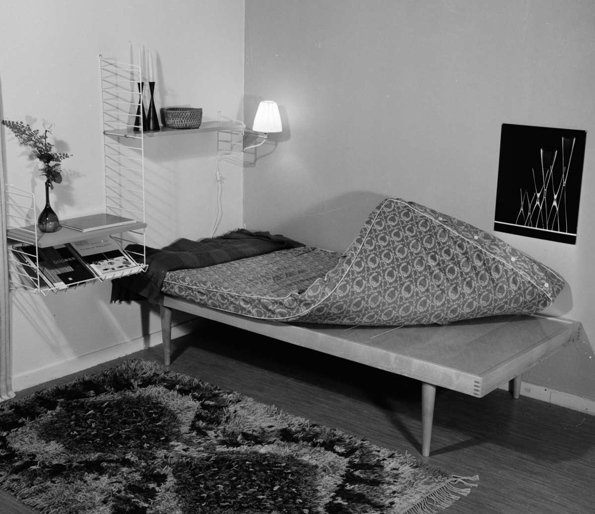Interiör med stringsäng, foto i ateljén