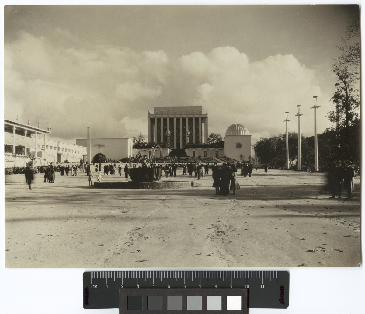 Stora gården med Najadfontänen, Minneshallen, Huvudrestaurangen tv. och Sjöfartshallen.