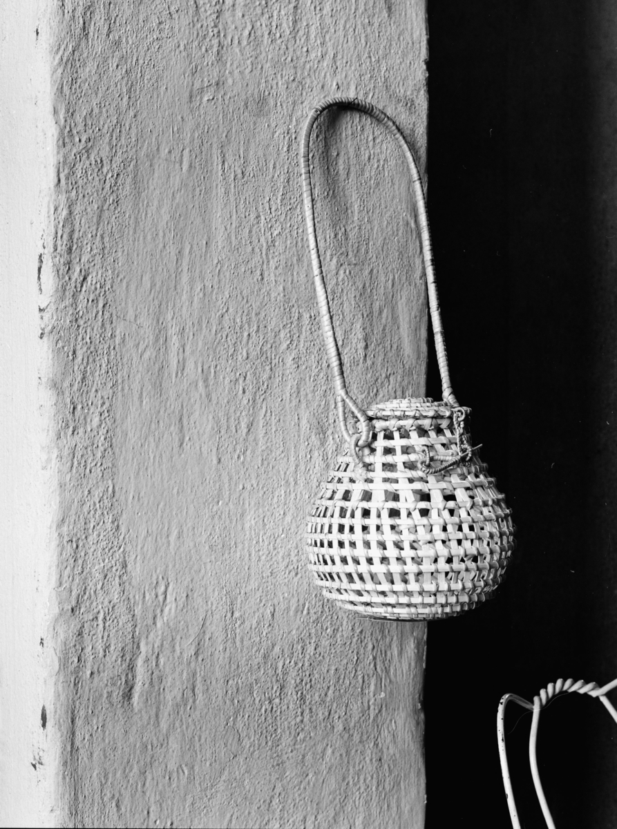 Interiör. Flätad korg på väggen