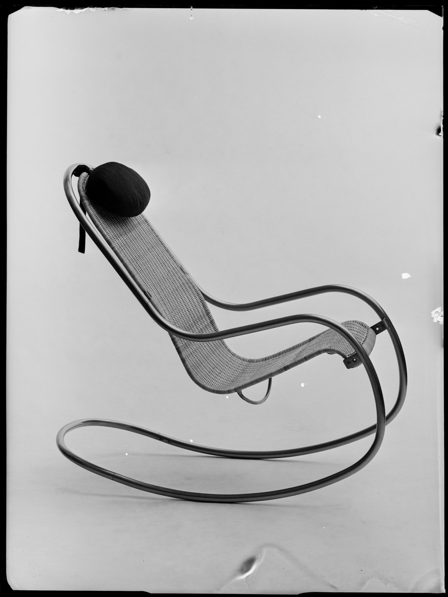 GUNGSTOL AV ROSTFRITT STÅL MED FLÄTAD ROTTINGSITS