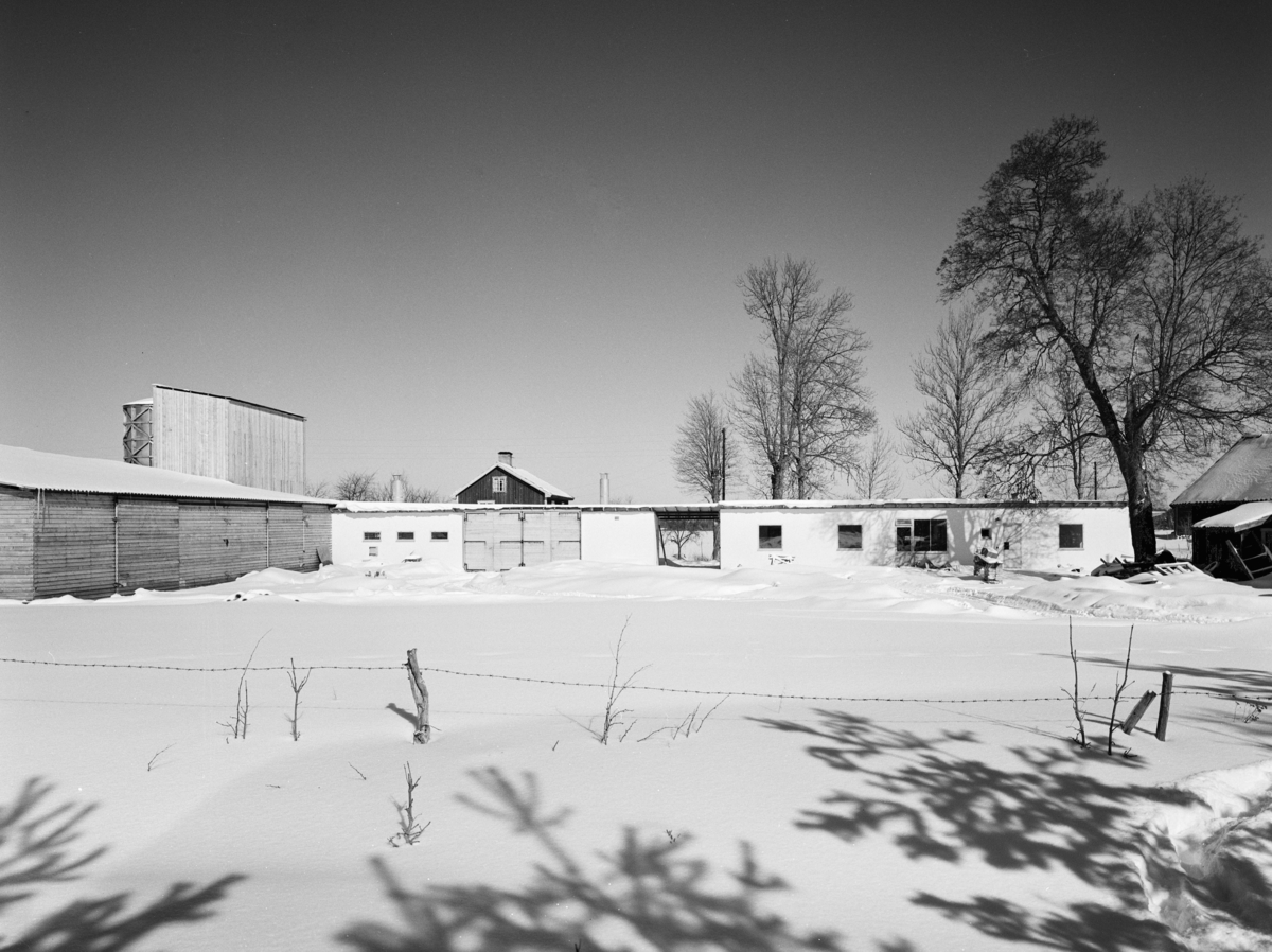 Exteriör, i solbelyst vinterlandskap med skuggor av trädkronor i förgrunden