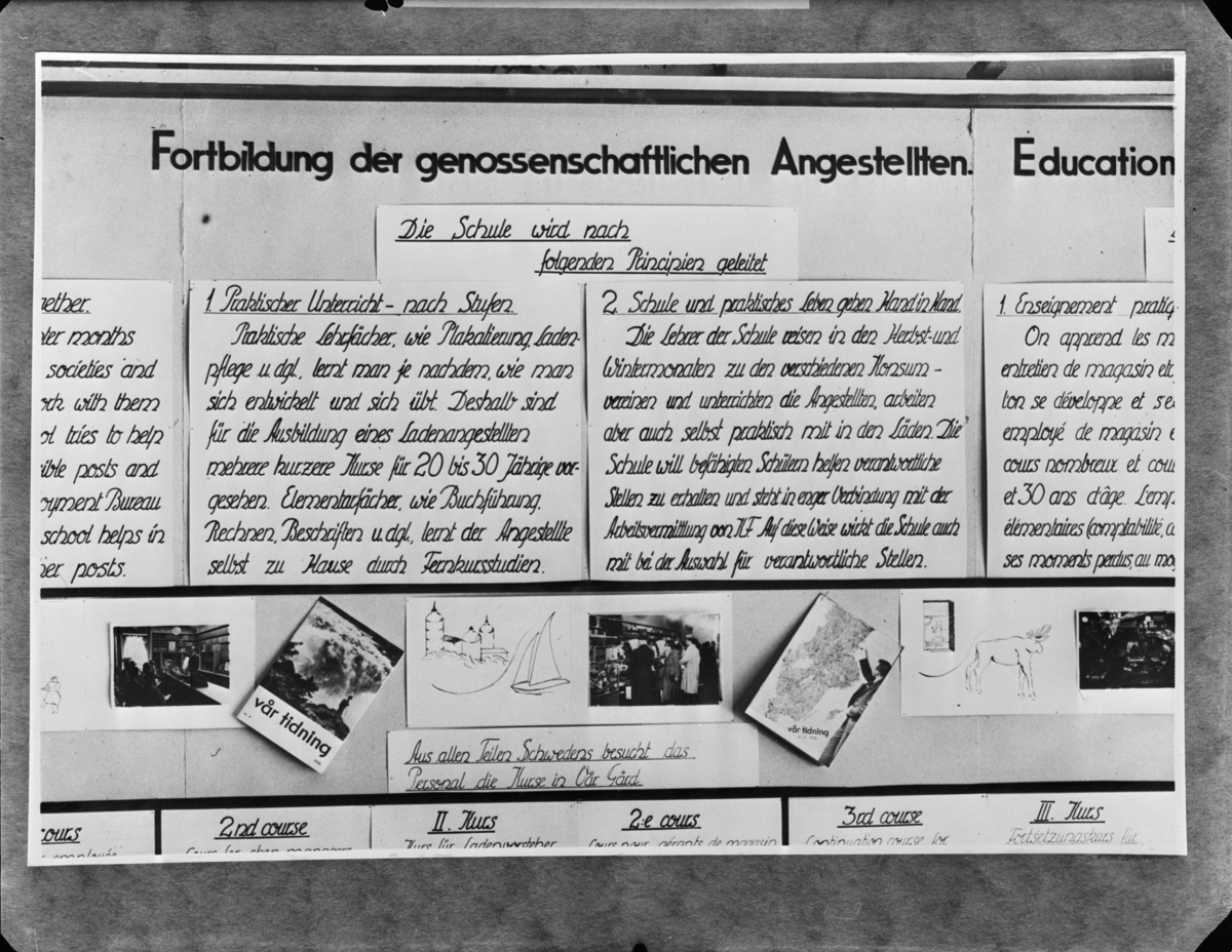 Titel: Vår Gård, Saltsjöbaden Utställning om kooperation på engelska, tyska och franska Interiör