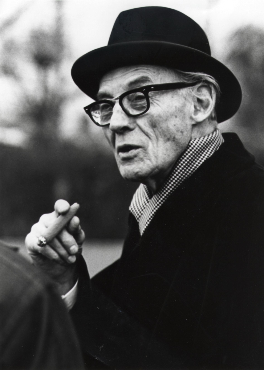 Porträttbild av Sigurd Lewerentz vid S:t Petri kyrka