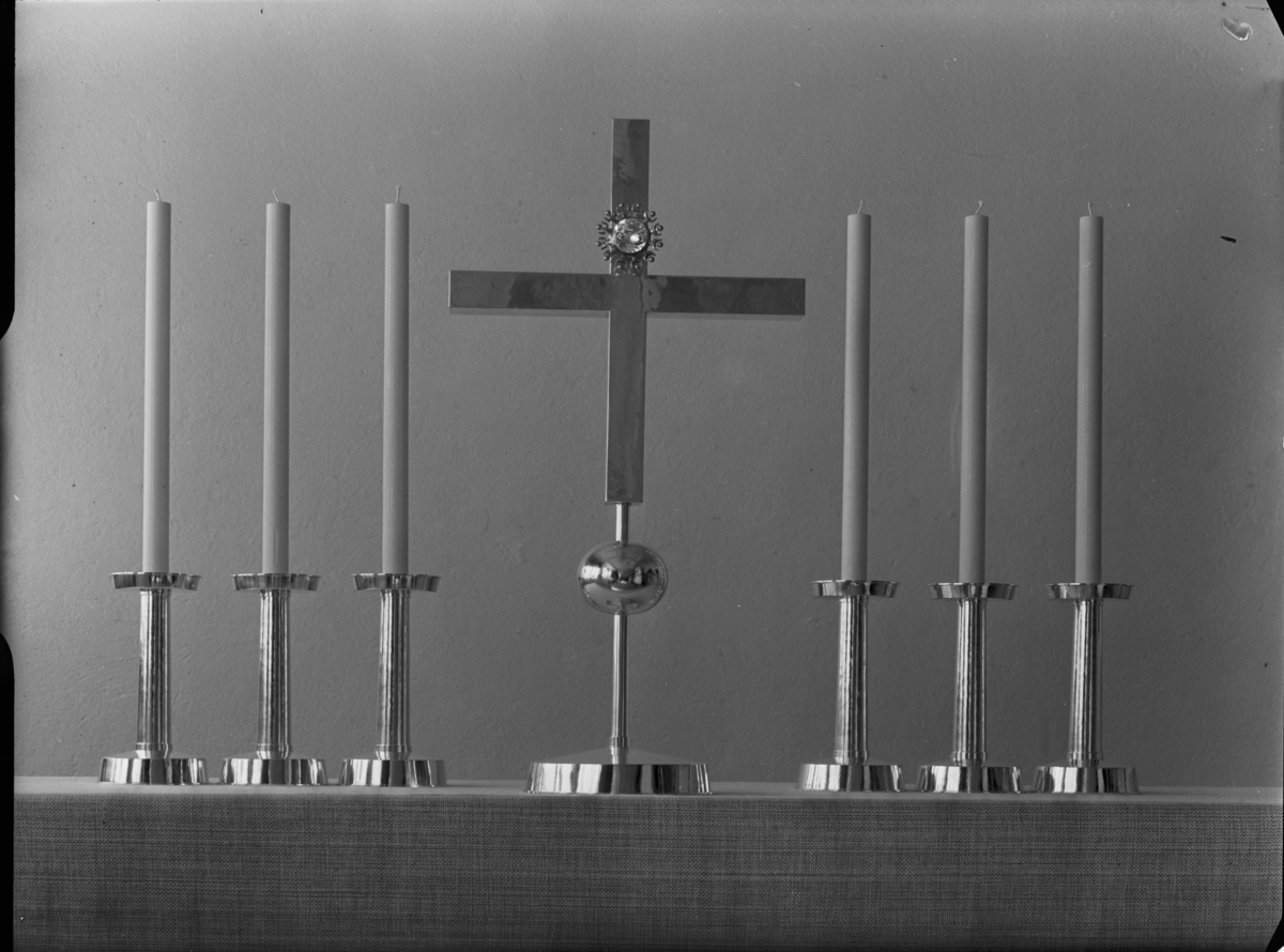 Altarkors med bergkristall och 6 st altarljusstakar i silver, Adolf Fredriks kyrka, Stockholm.
