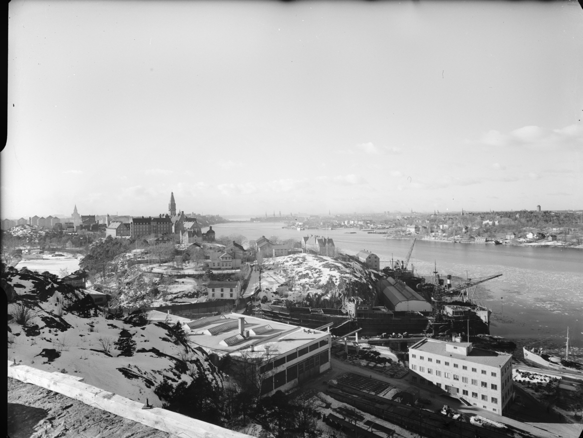 Vy över Stockholm från Finnberget med Danvikshem i förgrunden