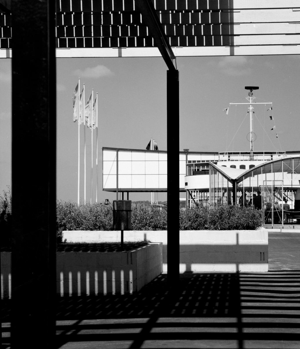 Exteriör, i förgrunden skuggbildning av ribbtak, i fonden Bar 55.