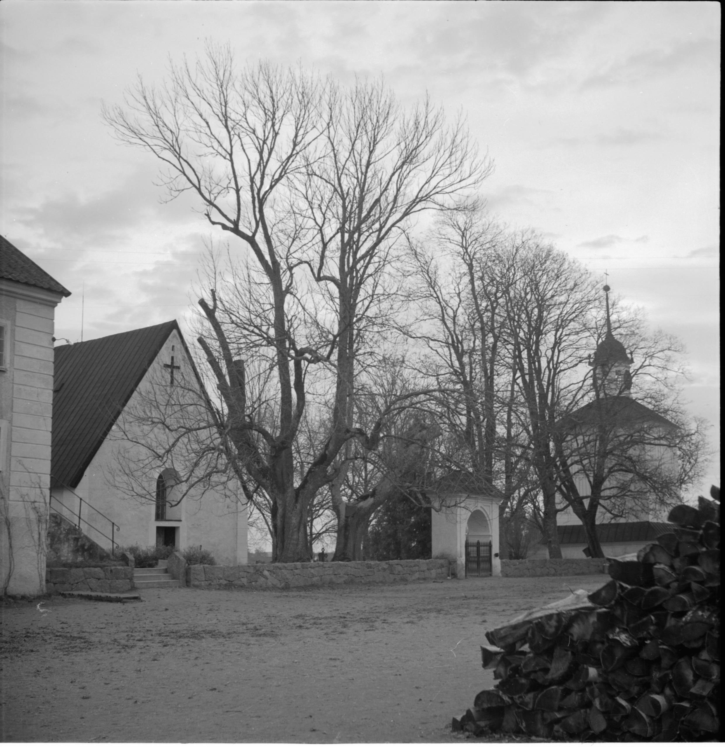 Västfasaden, västra stigluckan och klockstapeln, mot nordväst.