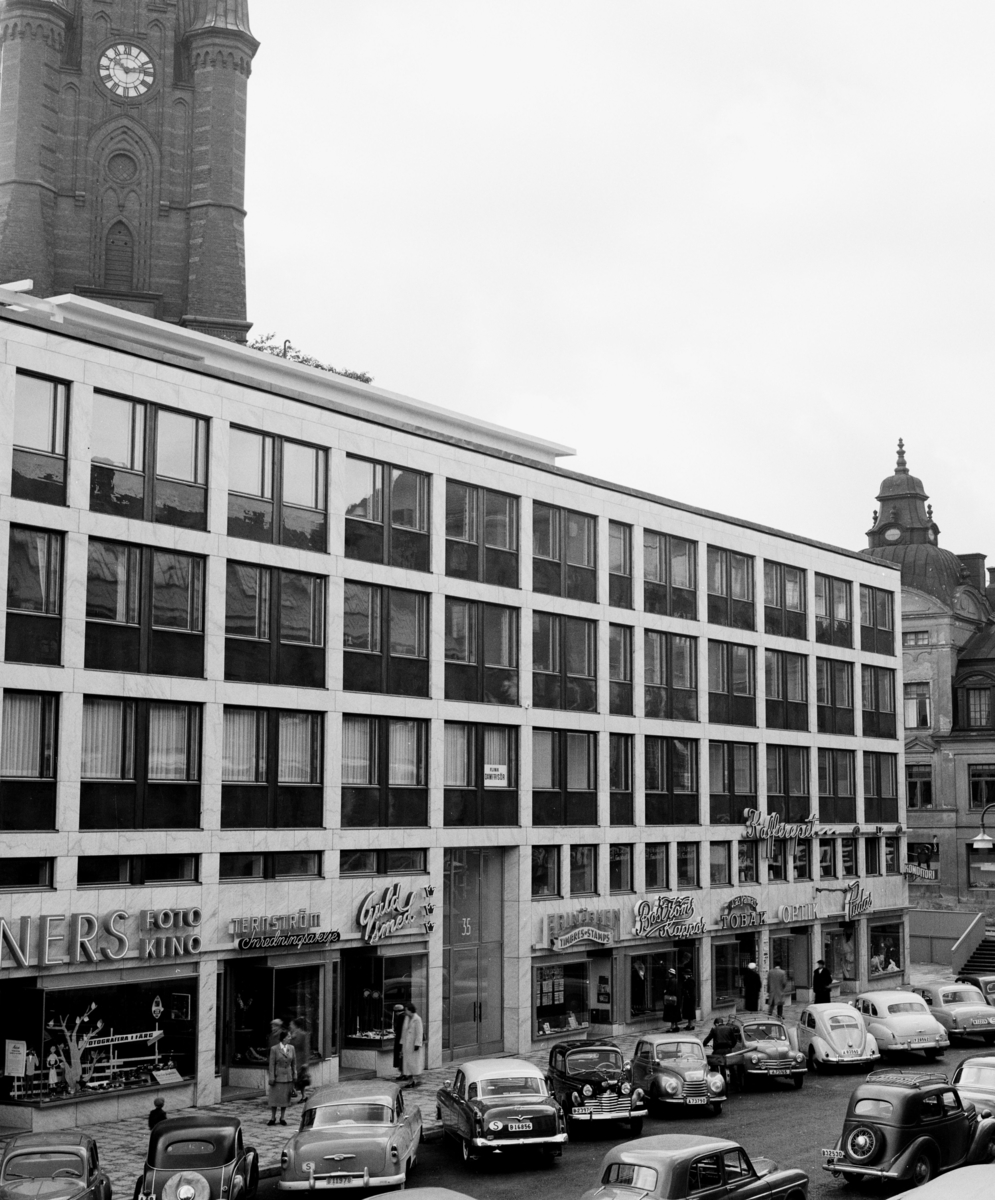 Exteriör, fasad mot Klarabergsgatan sedd i västlig riktning. Till vänster Klara kyrka
