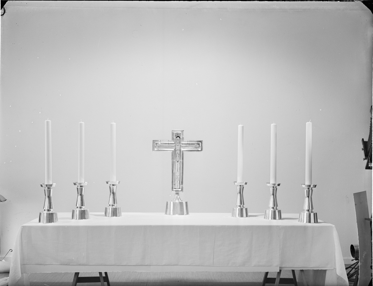 Altarljusstakar och krucifix, Sunne kyrka.