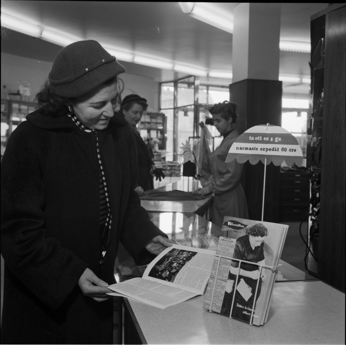 SKYLTSTÄLL FÖR TIDSKRIFTEN VI HUSMÖDRAR Å AFFÄRSDISK