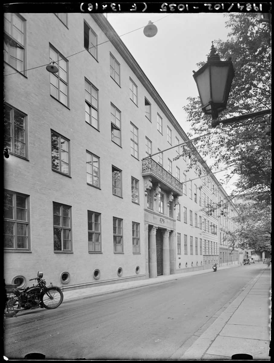 Titel: Svenska Tändstickspalatset Exteriör. Fasad på långt avstånd