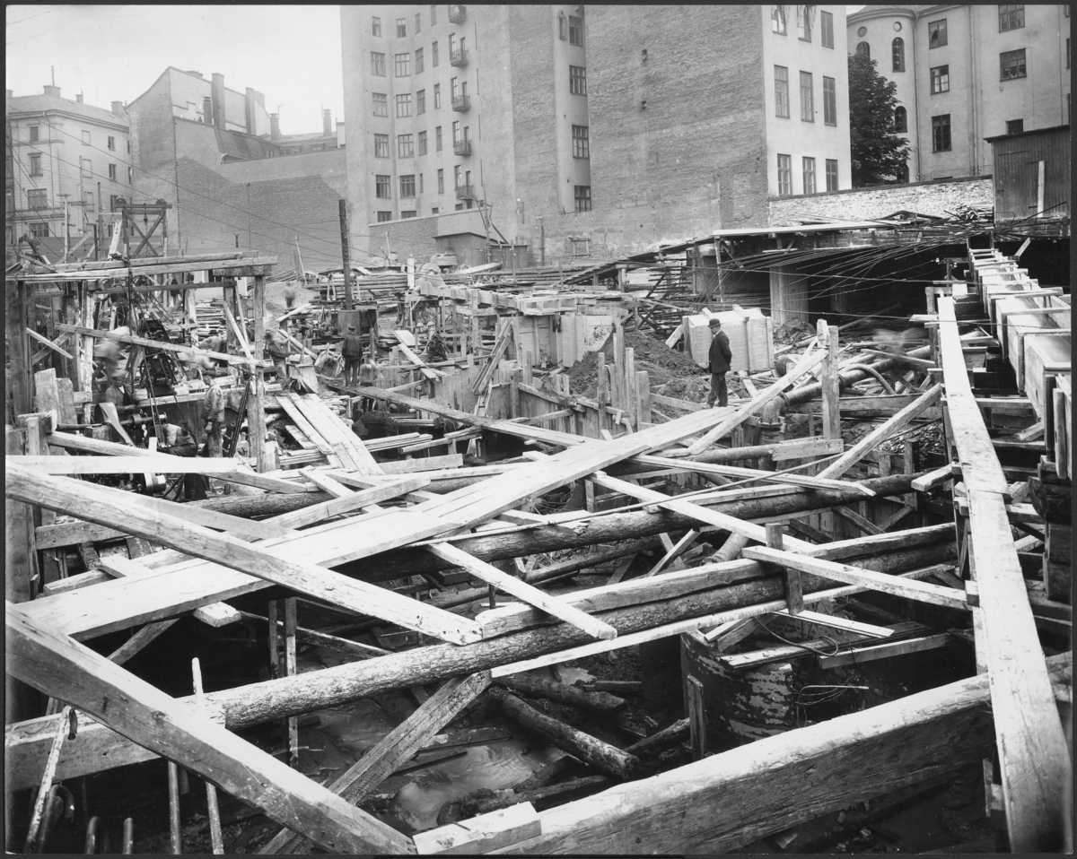Exteriör. Byggnadsplatsen, diamantborrning.