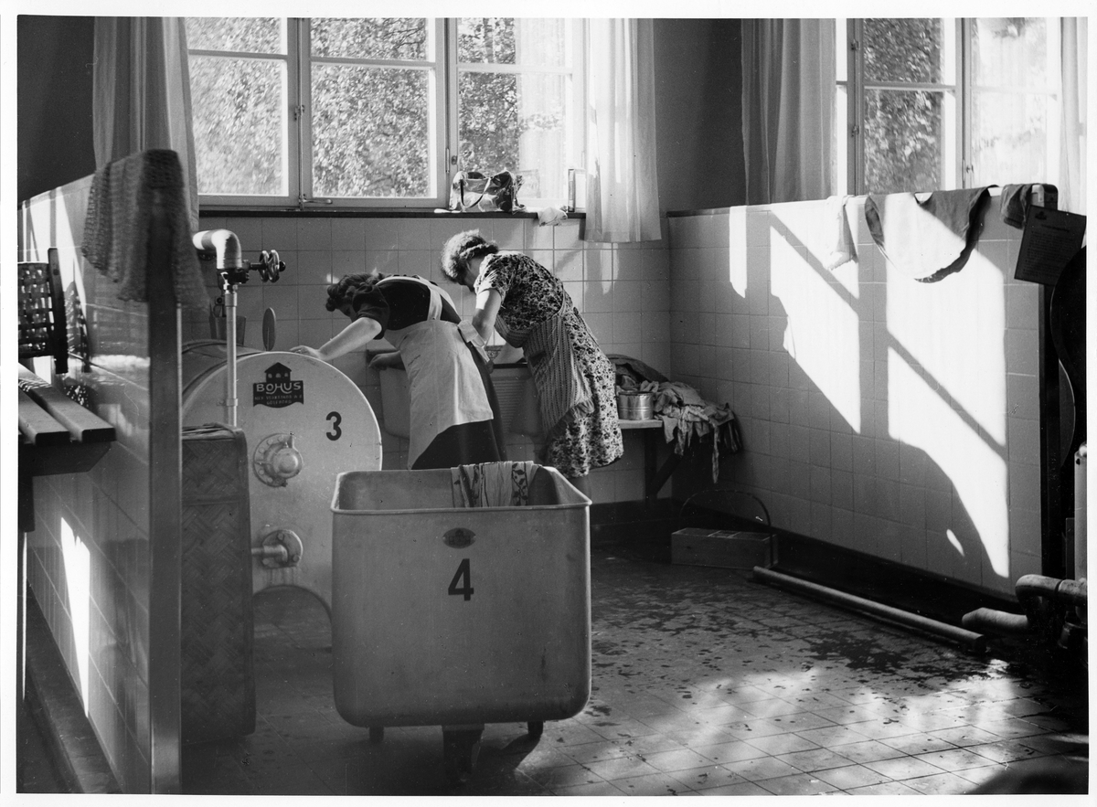 Interiör med kvinnor som tvättar