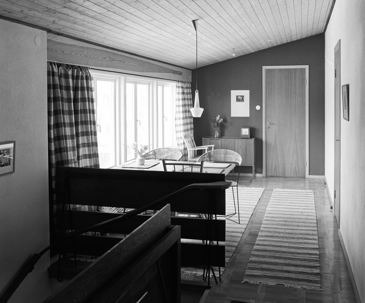 Interiör, övre planet. Matbord vid fönster med ljusinsläpp