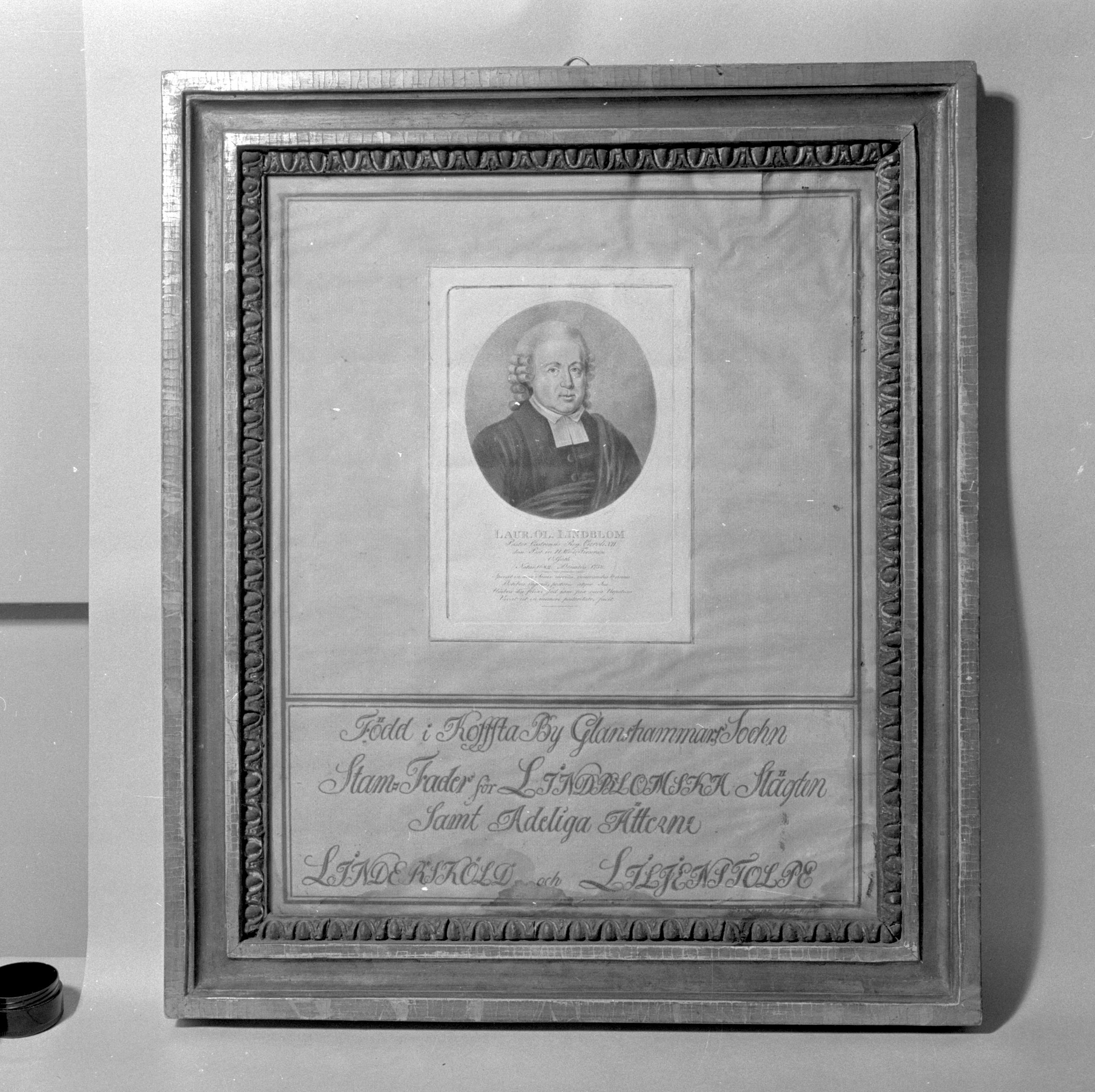 Porträtt av kyrkoherden Lars Olof Lindblom. Mezzotintogravyr av A.U. Berndes.