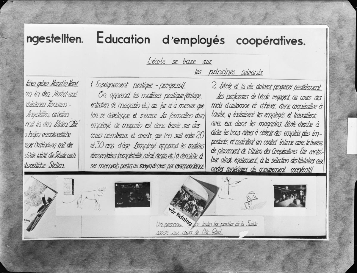 Utställning om kooperation på engelska, tyska och franska