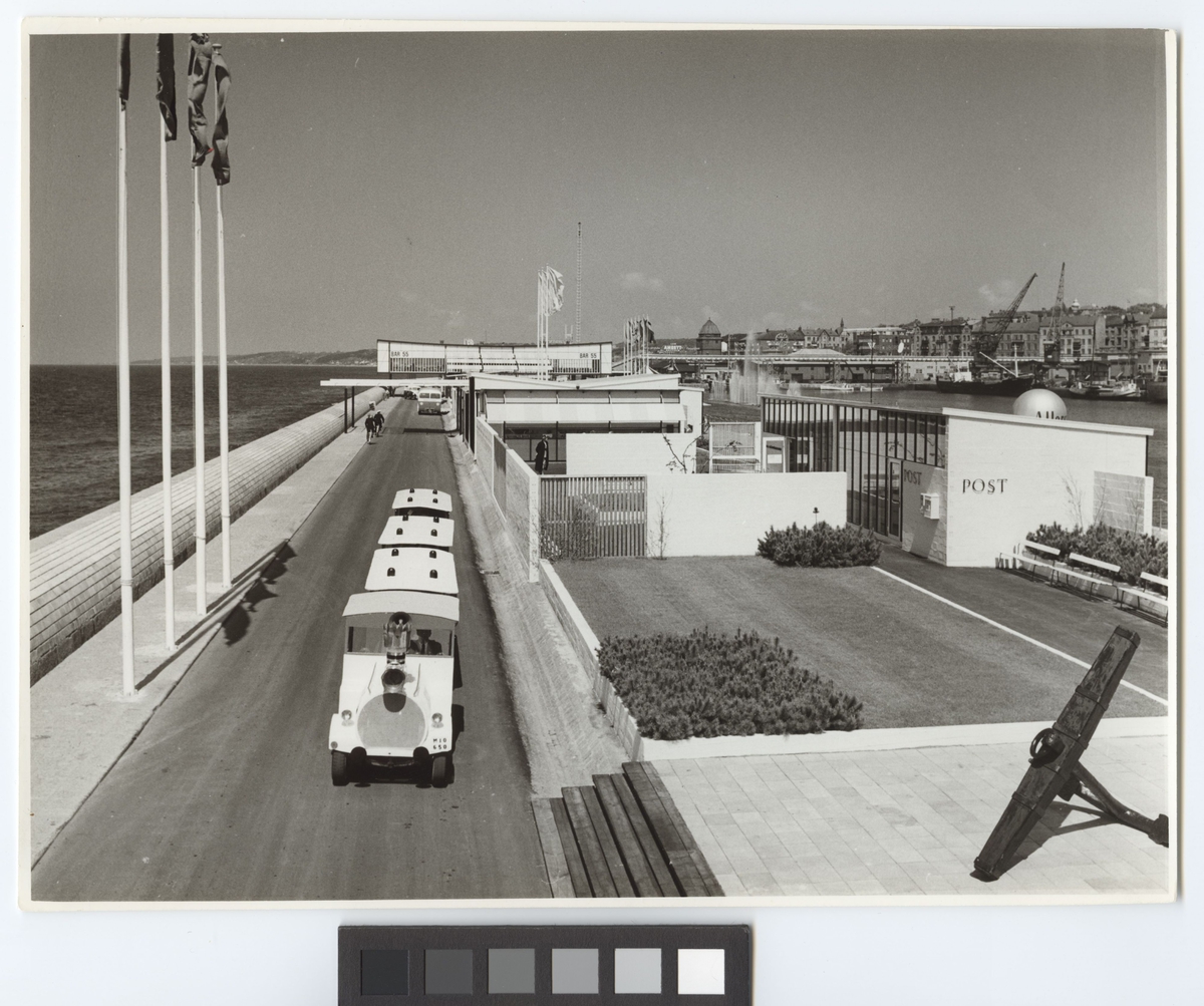 Utsikt mot Bar 55, Post samt tåg på vägen i förgrunden