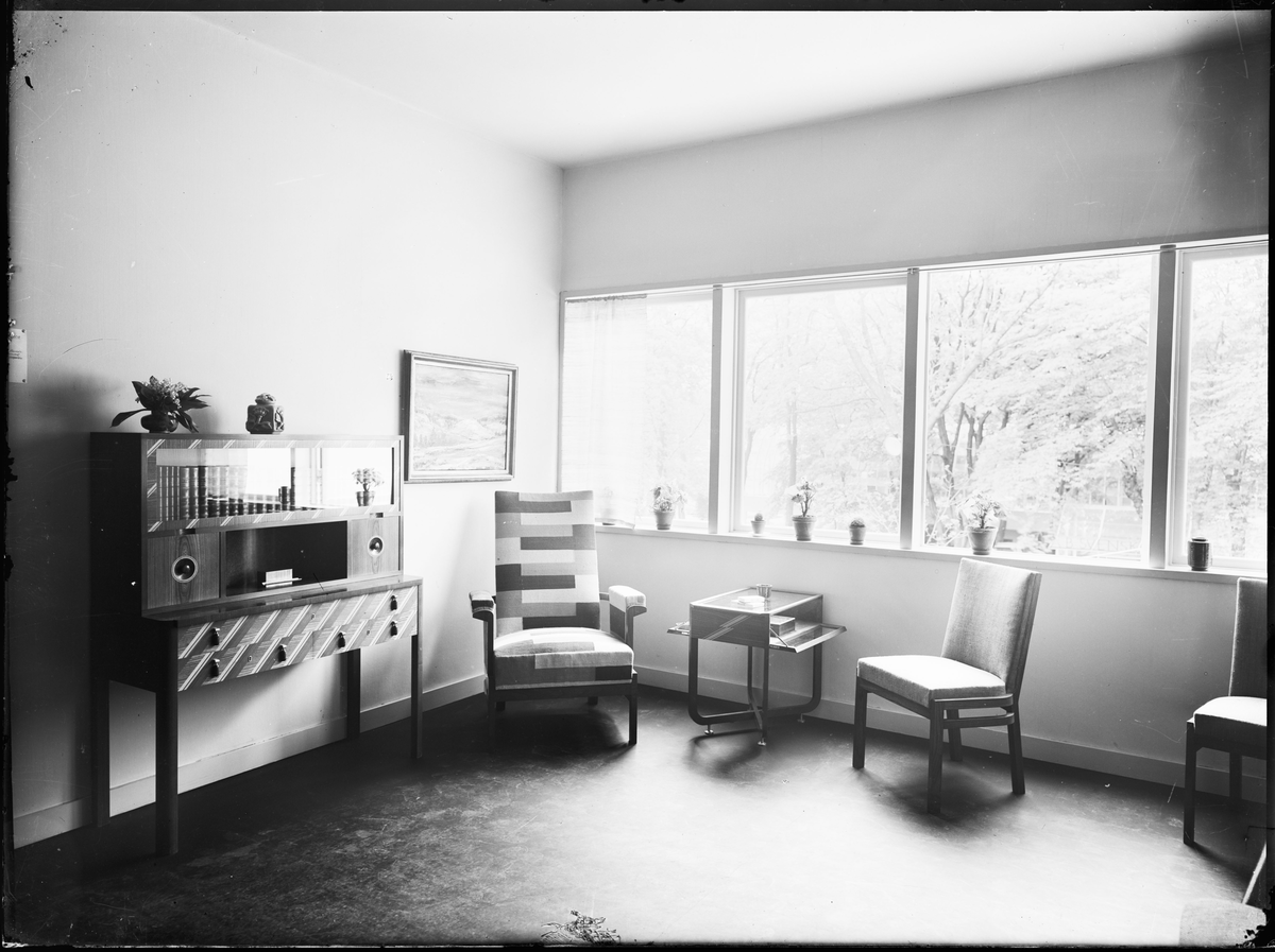 Egnahem, interörer, vardagsrum med mönstrad fåtölj