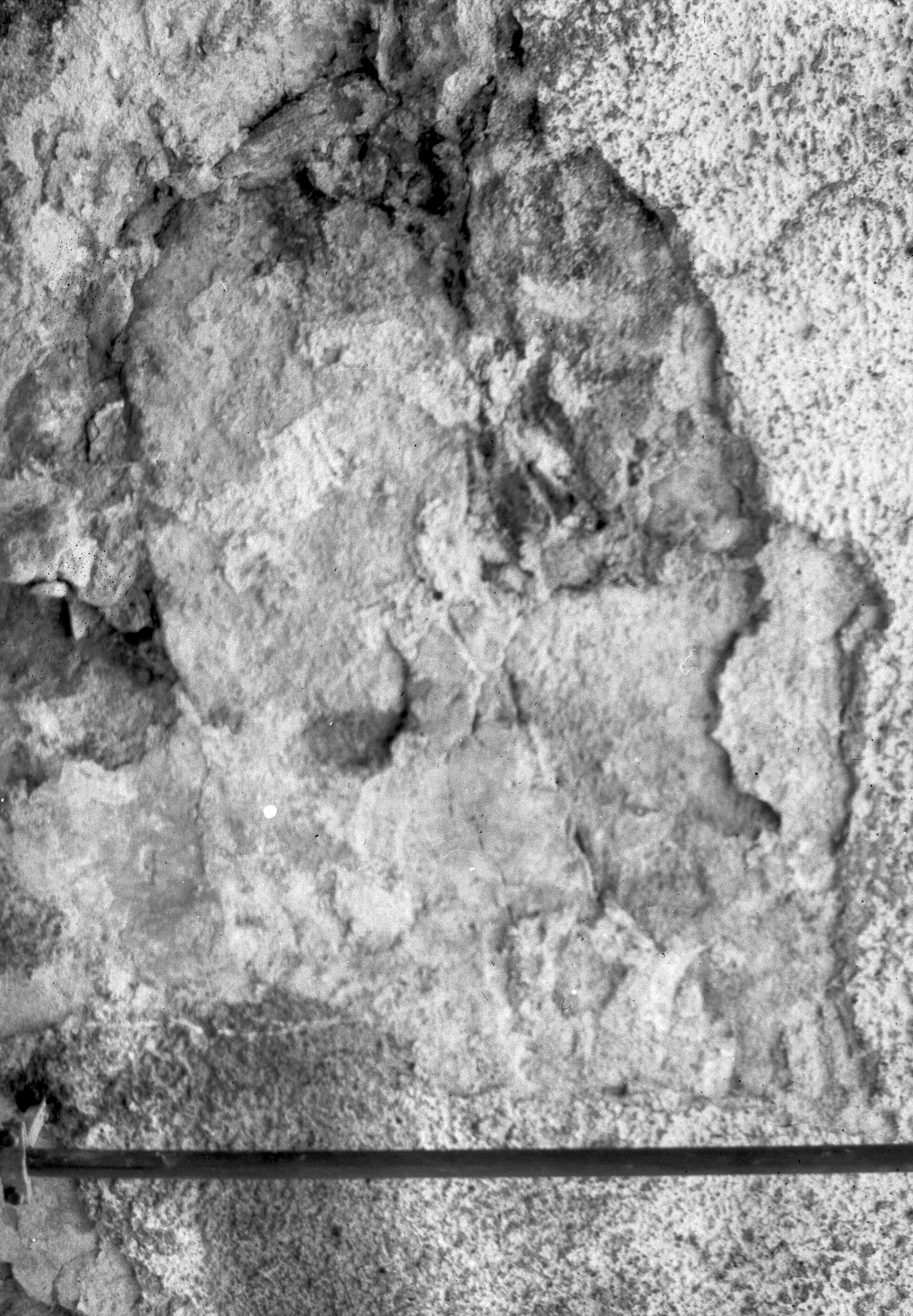 Ursprunglig puts av gamla kyrkans östra fasad.