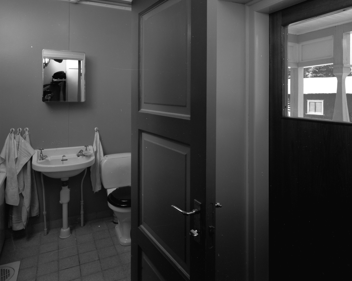 Interiör, öppen dörr in till toalett och tvättutrymme