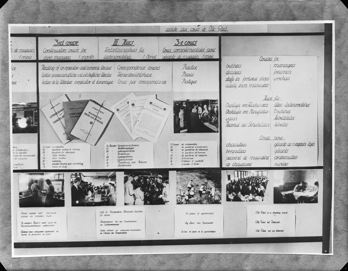 Utställning om kooperation på engelska, tyska och franska