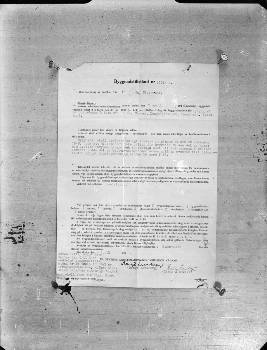 Byggnadstillstånd för villa Tor Ström, Stocksund