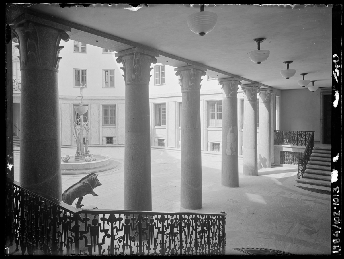 Titel: Svenska Tändstickspalatset Exteriör. Portik mot gård