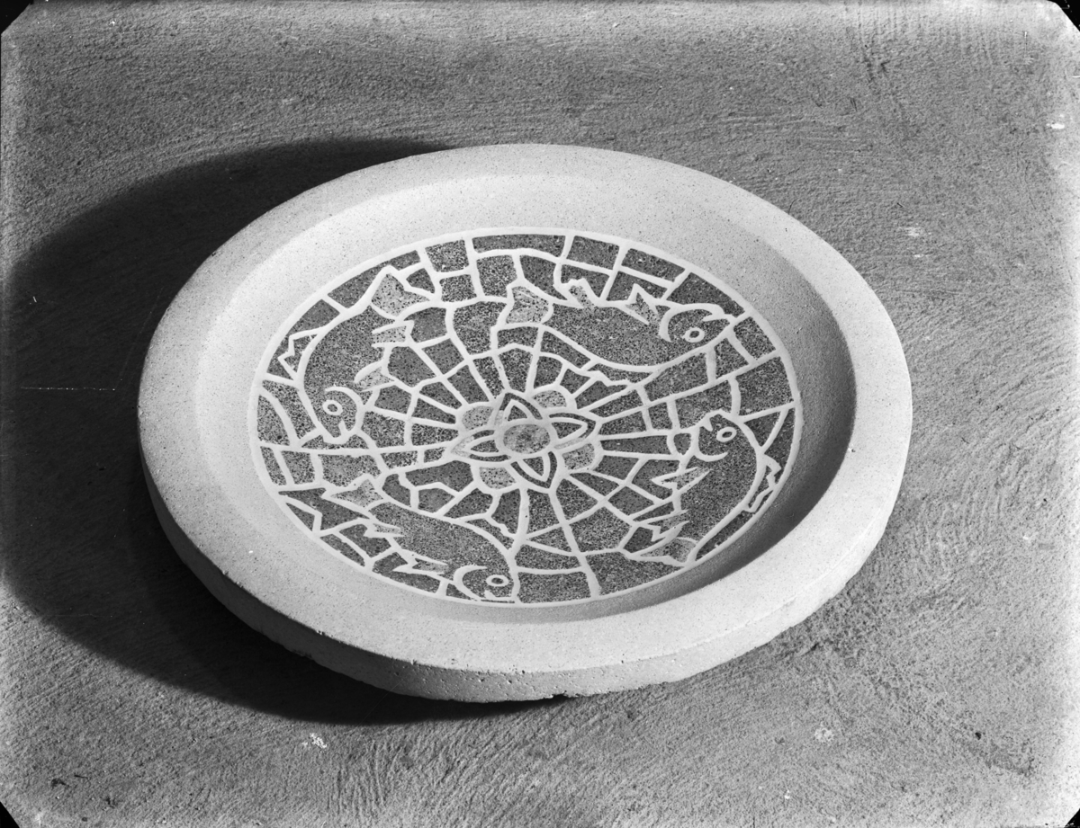 Keramiskt fat med dekor av fiskar