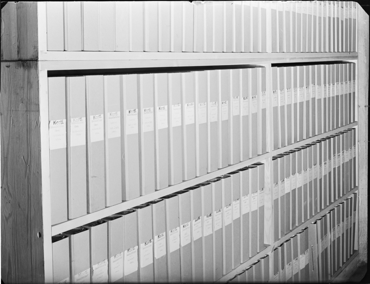 GAMLA FÖRSTÖRDA ARKIVERADE HANDLINGAR SAMT ARKIVHYLLA MED PÄRMAR I FÖREDÖMLIGT SKICK