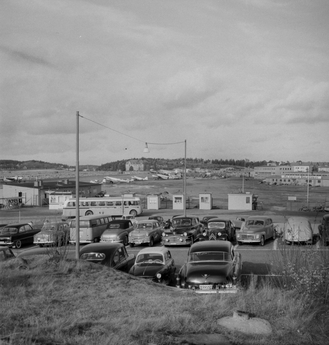 Grafisk Konst (herr Romell) Bromma: flygvärdinna, SAS-plan, bil o flyg parkeringsplats