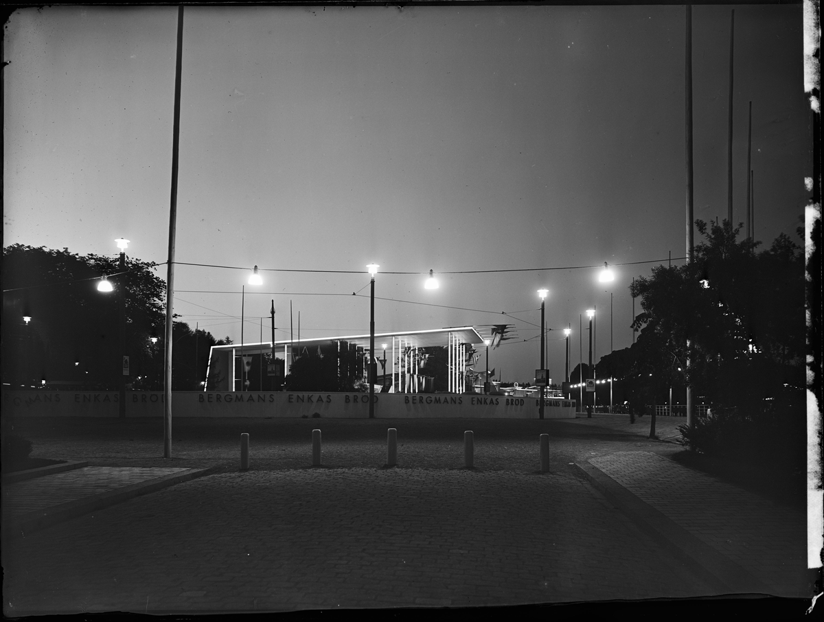 Titel: Stockholmsutställningen 1930 Kvällsbild på huvudentrén.