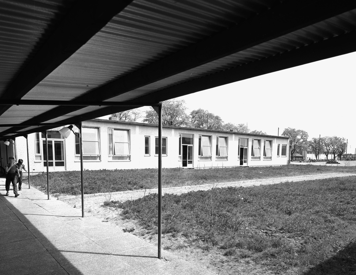 Exteriör, en av skolbyggnaderna med den öppna loggian i förgrunden