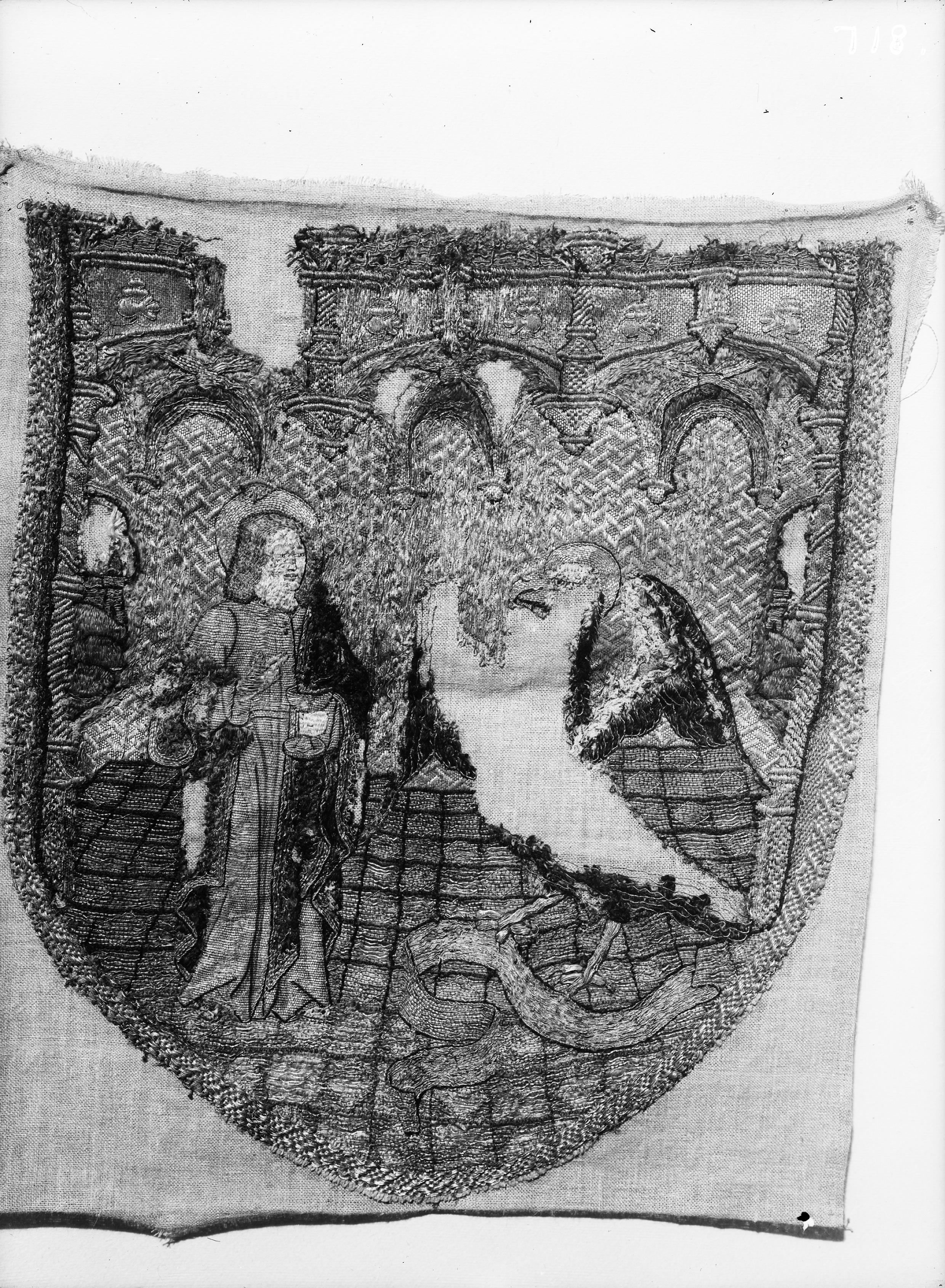 Ryggsköld från korkåpa, evangelisten Johannes, från omkring 1500.