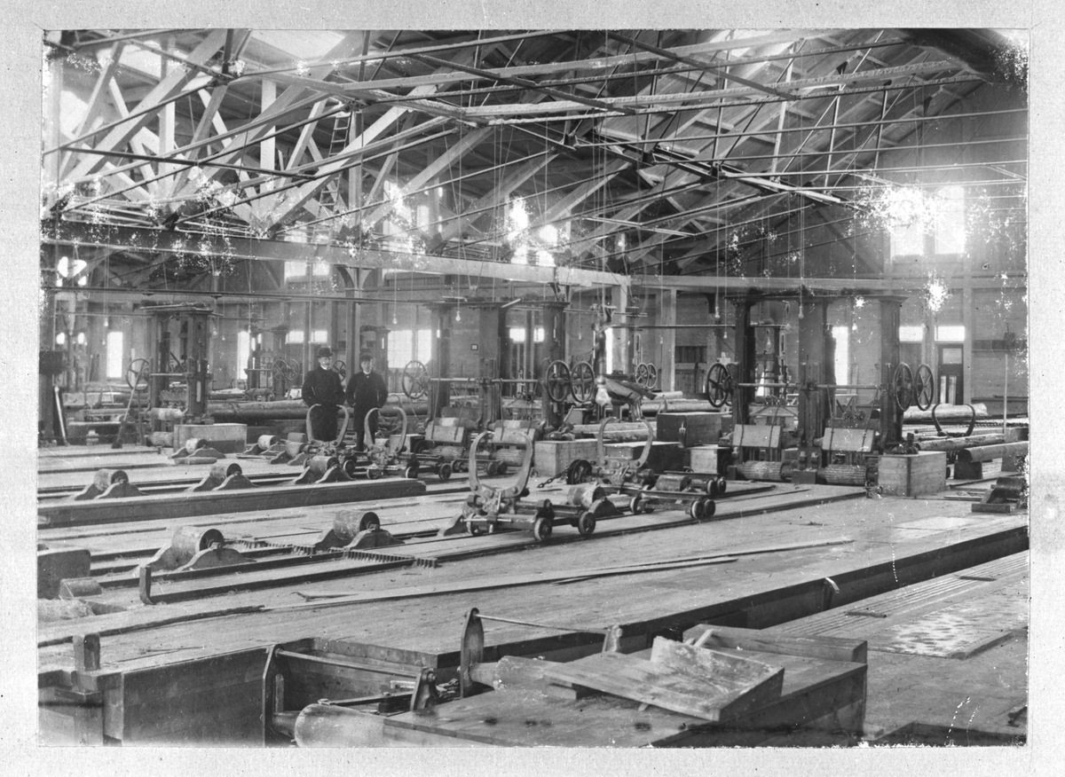 Korsnäs, interiör av första sågen, Kastet. Kopia. Korsnäs AB är ett av Sveriges ledande skogsindustriföretag som tillverkar kartong, säck- och kraftpapper, fluffmassa till hygienprodukter och sågade trävaror.