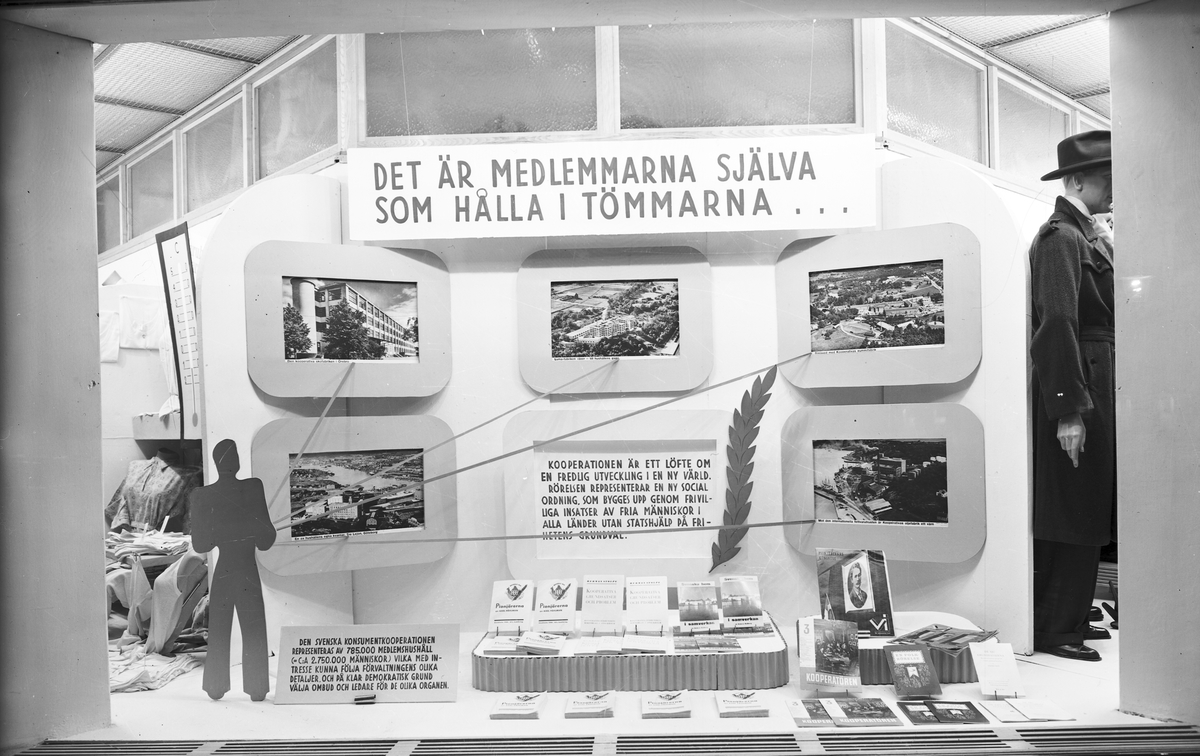 Konsum Alfa Varuhuset. Skyltfönstertema "Det är medlemmarna själva som håller i tömmarna"