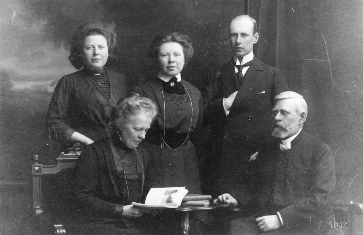 Kyrkoherde Paulus Holmgren med familj, våren 1912. Holmgren var kyrkoherde i Staffans församling från 1916.