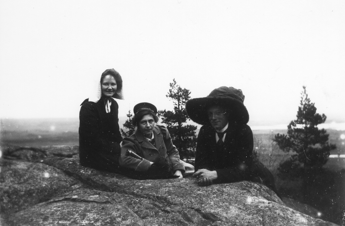 Tre kvinnor på Stenhällen på Rönnåsen.