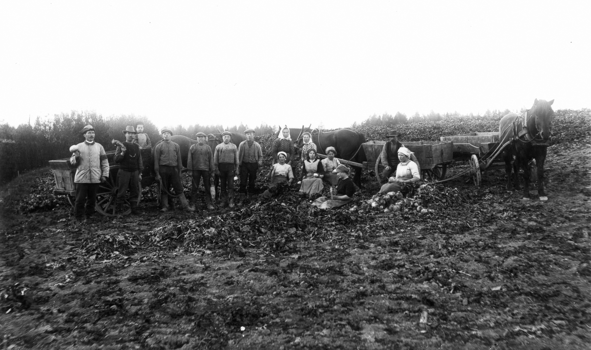 Sjunde personen från vänster är Gustaf Wååg, stående till höger om honom Häggs-Anna och Östbergs-Emma. Sittande från vänster Fagers-Anna och Jan-Hans Johanna.