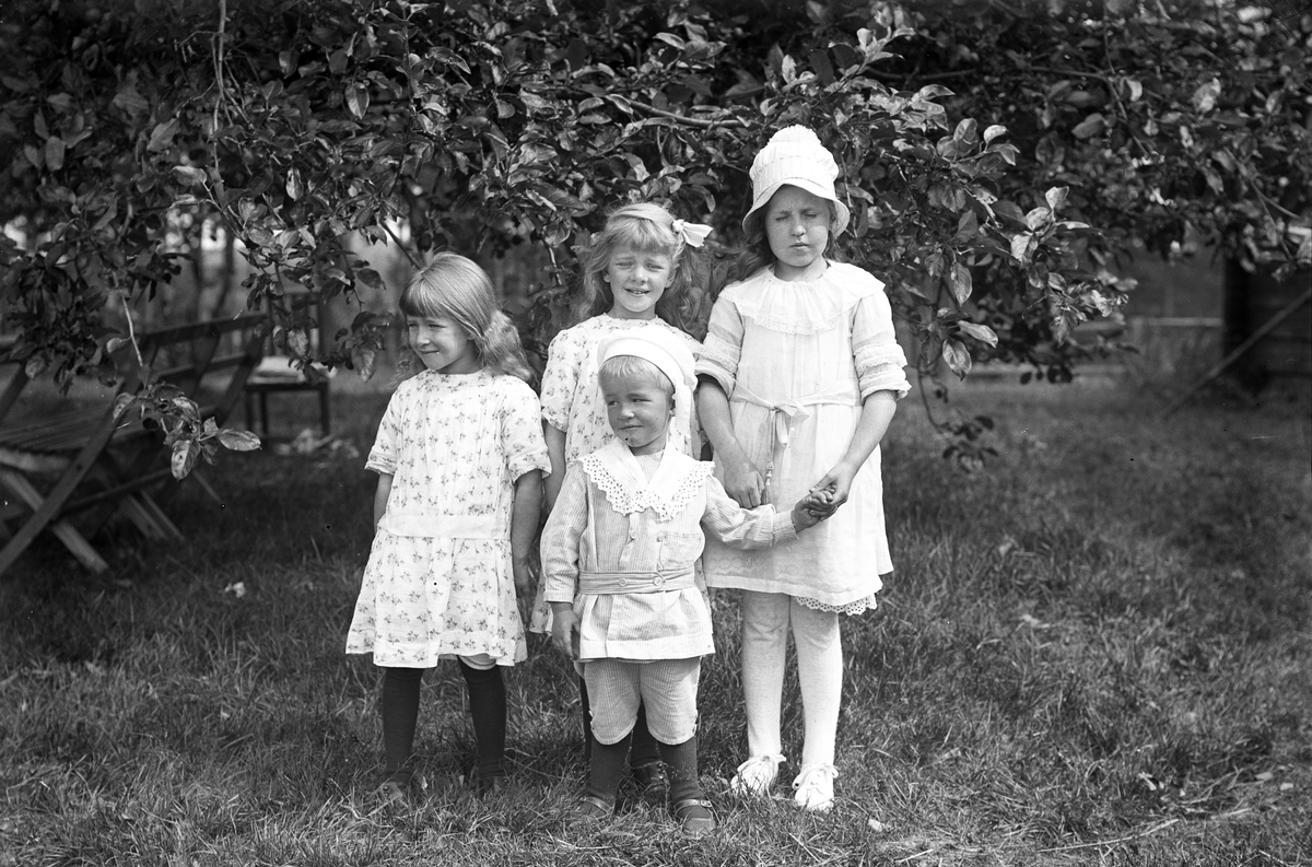Kusinerna vid "Erik Daniels" Åsmundshyttan. Från vänster Lilly, Vega och Erland alla Holm. Margit Åsberg-Karlsson, Åsmundshyttan