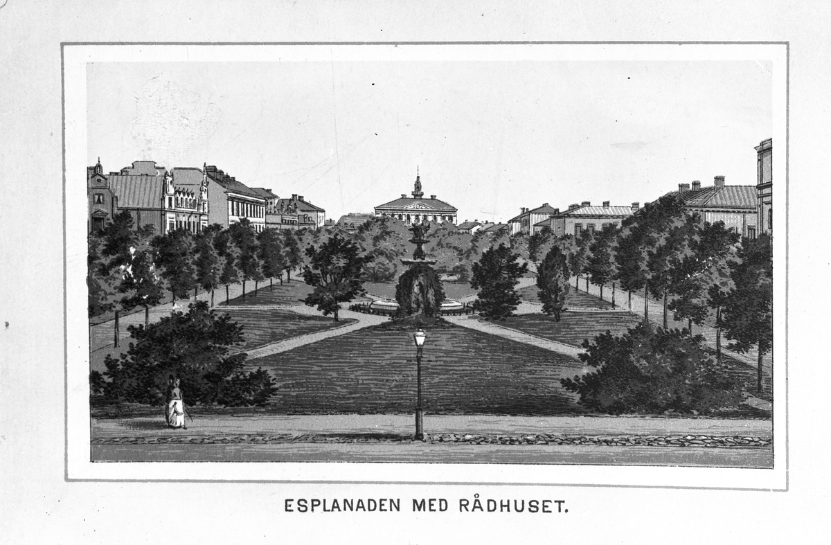 "Esplanaden med Rådhuset", efter foto av Fredrik Renard.