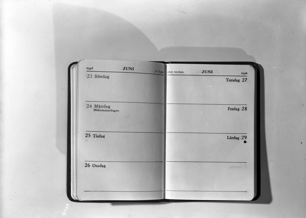 Reklam på almanacka, januari 1946. Skandico Reklam.