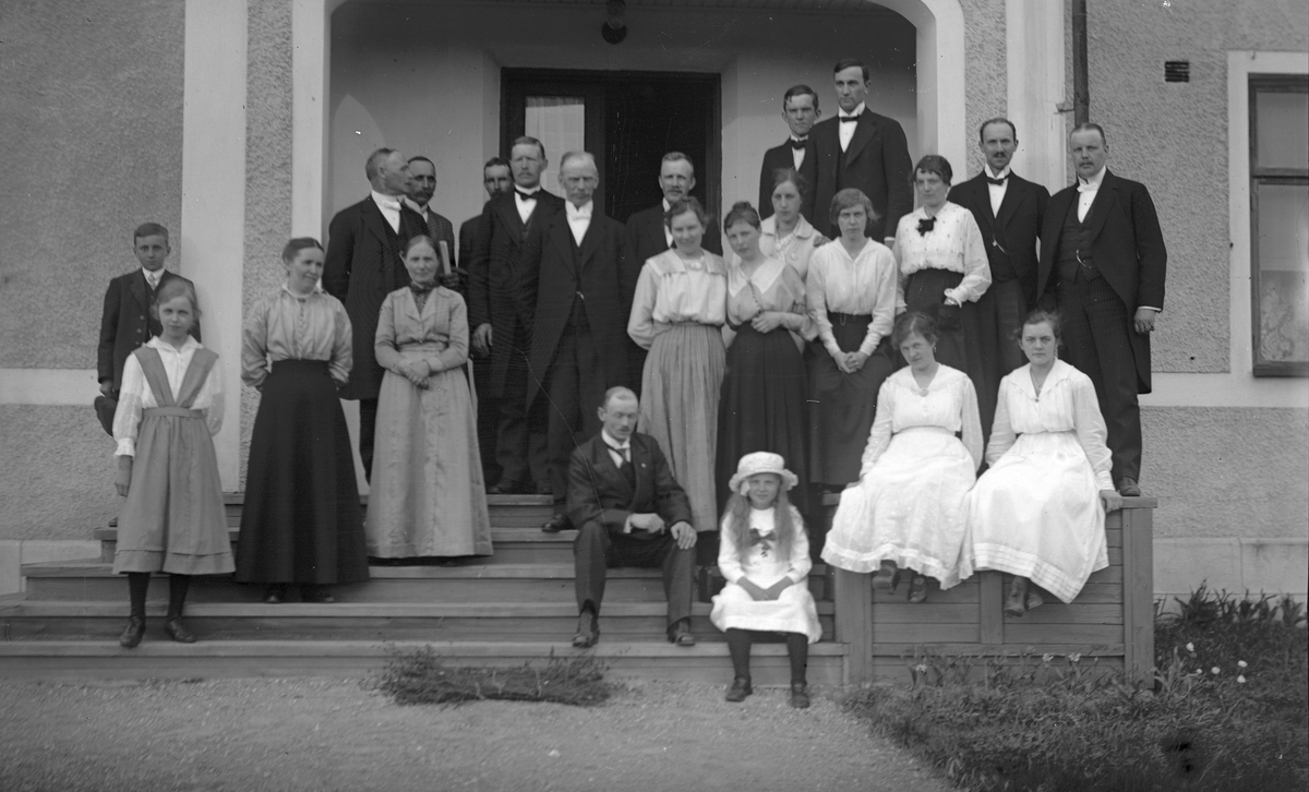 Grupporträtt på okänd gårdstrappa.