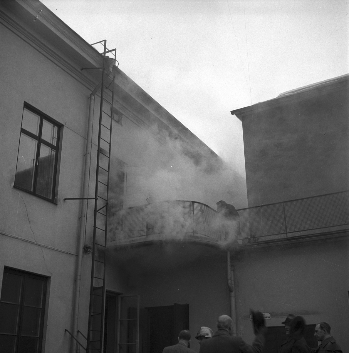 Nordströms Fruktaffär. Eldsvåda i lagret. 7 februari 1950.