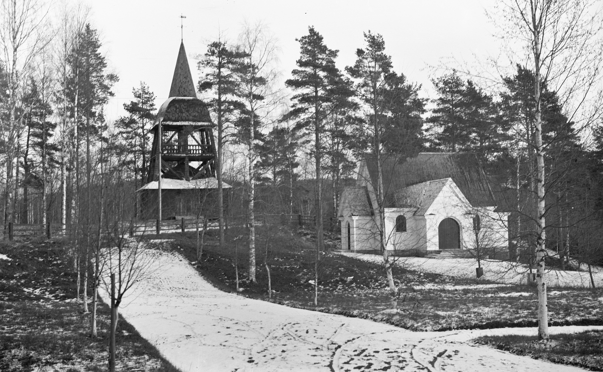 Hofors gravkapell och klockstapel omkring 1920.